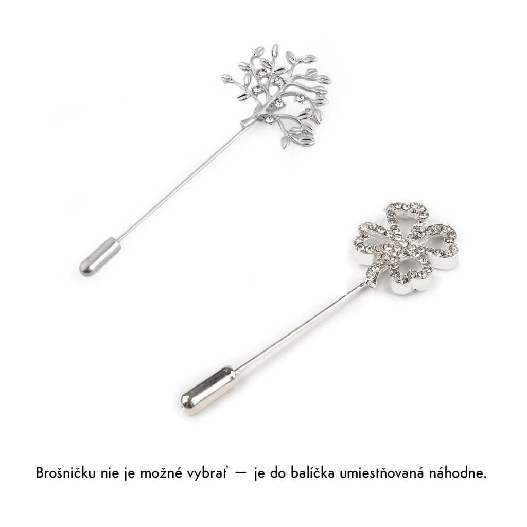 - Očakávajte prekvapenie: Váš set (šerpa v krabičke + ozdobný špendlík s venovaním) starostlivo zabalíme. Motív špendlíka (Strom života alebo Štvorlístok) vyberáme náhodne, aby v balíčku zostalo malé prekvapenie pre nevestu.