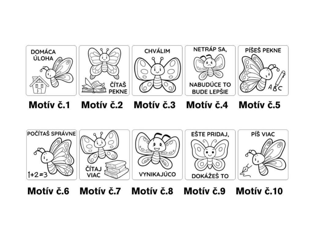 ✅ pečiatka je zložená z obrázku a textu, ktorým učiteľka hodnotí žiaka