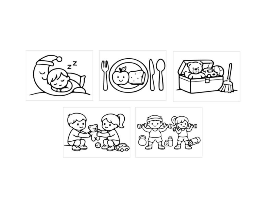 ✅ na pečiatkach je 5 činností na hodnotenie v škôlke