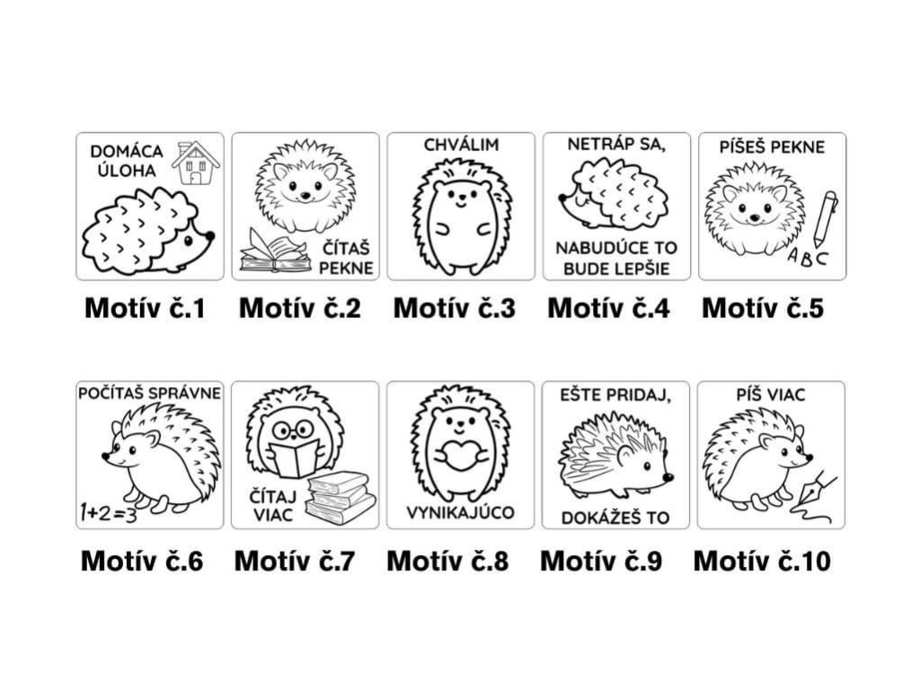 ✅ pečiatka je zložená z obrázku a textu, ktorým učiteľka hodnotí žiaka