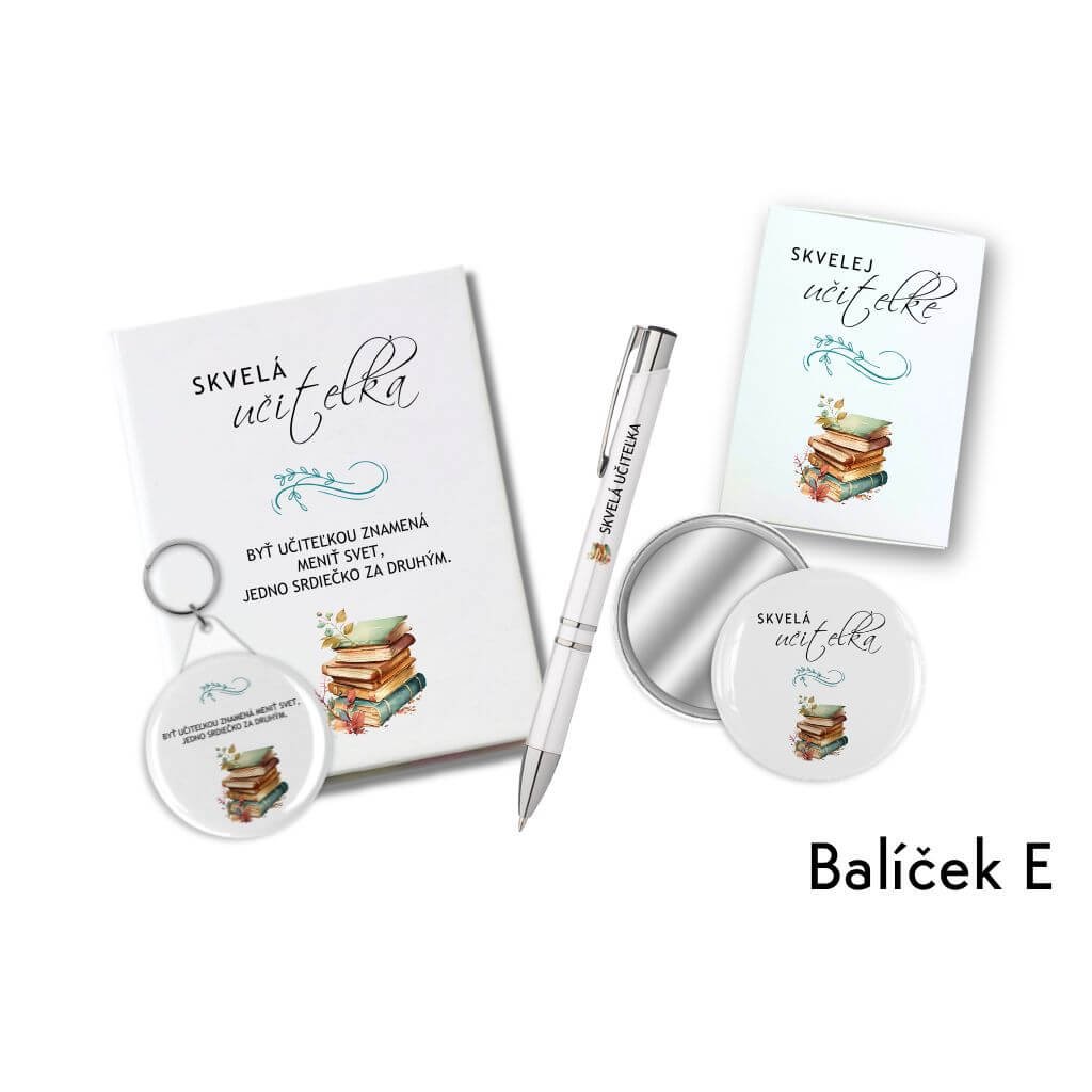 ✅ balíček E: sada papierikov, pero, minizrkadielko, kľúčenka, darčeková krabička s potlačou