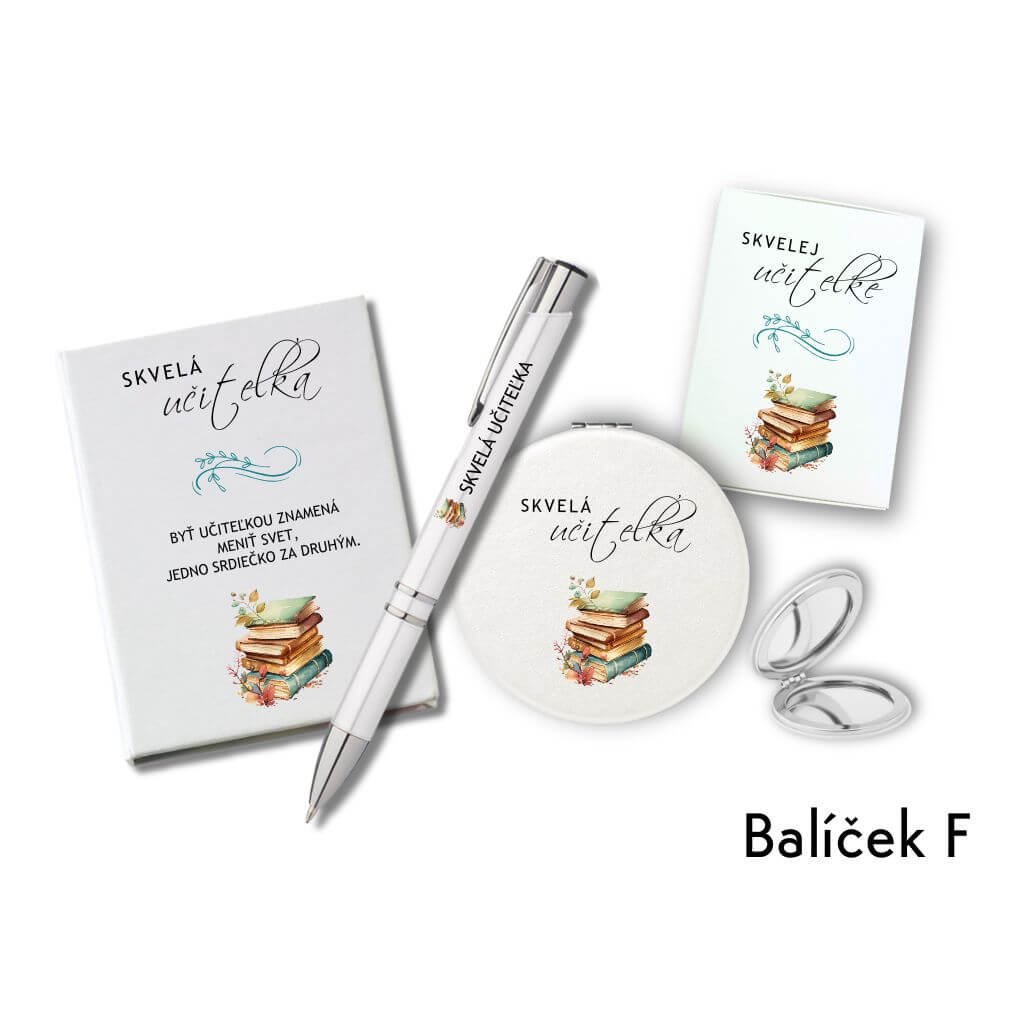 ✅ balíček F: sada papierikov, pero, zrkadielko, darčeková krabička s potlačou