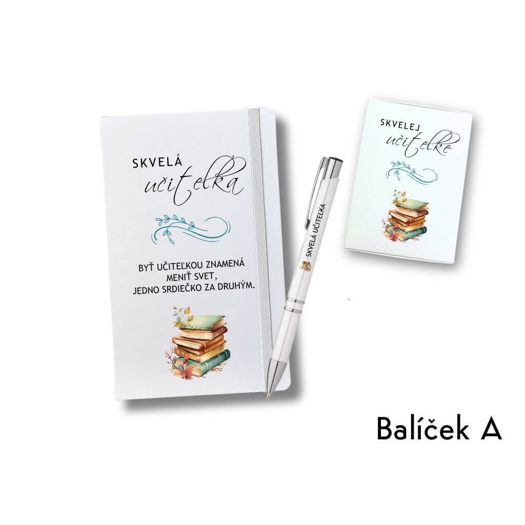 ✅ balíček A: zápisník A6, pero, darčeková krabička s potlačou