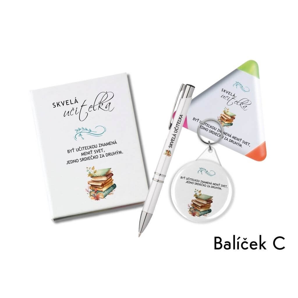 ✅ balíček C: sada papierikov, pero, zvýrazňovač, kľúčenka, darčeková krabička s potlačou